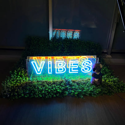 アクリル底板にお好きなデザインをUV印刷します。ネオンで表現しきれない細かいデザインも表現可能です。ネオンの光と絵を組み合わせることで唯一無二のアート作品に! ※UV印刷=紫外線で固定されるUVインキをつかった印刷方式