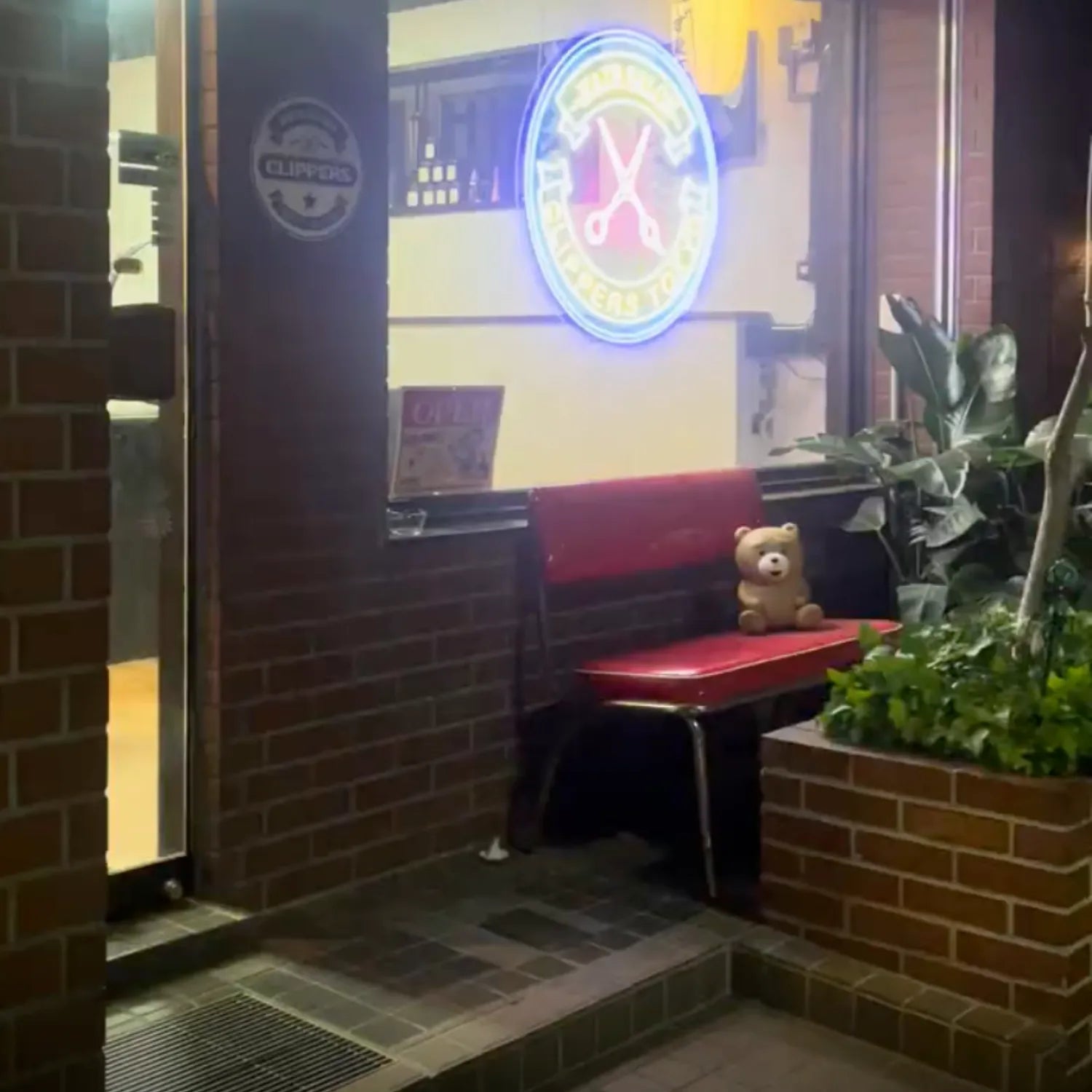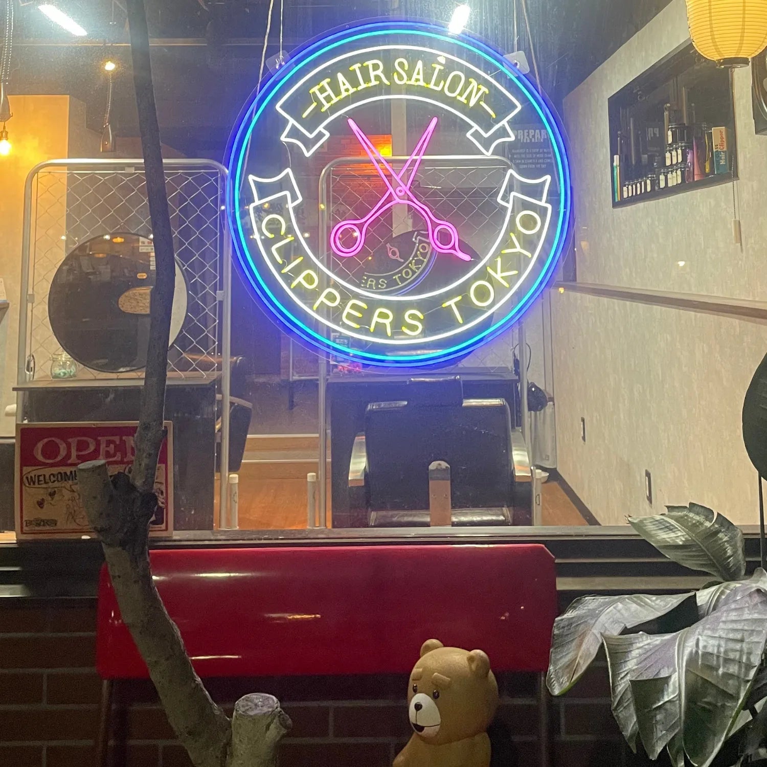 奥まった入り口にアイキャッチを。アメリカンガレージ風 メンズ特化サロン CLIPPERS TOKYO × ネオンサイン 東京・府中市
